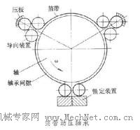 箔带被拉紧后用压板和锁定装置固定,3个扇形段包住轴颈,相当于3个轴瓦。轴旋转时,润滑剂因粘性作用随轴进入3个扇形段,形成动压润滑膜,从而使箔带变形与轴脱离接触。也可利用这个原理在移动的箔带与起导向作用的刚性表面(圆柱面、圆弧面、平面)间建立润滑膜,避免箔带与导向面直接接触,从而减小摩擦。